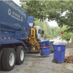 The Solid Waste Division operates on a hybrid fleet and uses both automated and semi-automated trucks. With this collection system, carts should be 3 ft. from trees, mailboxes, vehicles and the recycling cart for quick and efficient service.